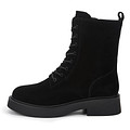 Стильные черные ботинки с высокой шнуровкой. Верх выполнен из бархатистого спилка, который отличается прочностью и долговечностью. Подкладка и стелька утеплены ворсином, что создает уют и тепло в прохладную погоду. Высокая подошва из ТЭП обеспечивает хорошее сцепление с любой поверхностью. Модель с удобной застежкой на молнию.