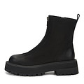 Стильные черные ботинки с акцентной молнией на подъеме. Верх выполнен из бархатистого нубука, подкладка и стелька утеплены мягким ворсином. Высокая подошва из материала ТЭП обеспечивает надежное сцепление с любой поверхностью.