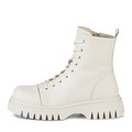 Базовые кожаные ботинки выполнены в бежевом цвете. Модель с утеплителем — подкладка и стелька изготовлены из мягкой натуральной шерсти. Оптимальную поддержку стоп и устойчивость на любых поверхностях обеспечивает рифленая подошва из резины.