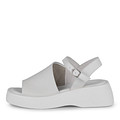Эффектные молочные кожаные босоножки на платформе. Легкая модель без подкладки обеспечивает отличный воздухообмен. Высокая подошва из полиуретана поддерживает стопы при ходьбе в оптимальном положении. Пара с изящным ремешком и застежкой на классический замок.