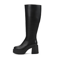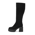 Эффектные высокие сапоги в классическом черном цвете. Верх выполнен из бархатистого спилка. Подкладка и стелька утеплены натуральной шерстью. Высокая плотная подошва из материала ТЭП обеспечивает надежную защиту от влаги и холода и устойчива на любой поверхности. Устойчивый каблук высотой 8,5 см визуально вытягивает силуэт и грамотно распределяет нагрузку на стопы.