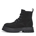 Базовые черные ботинки из бархатистого нубука. Подкладка и стелька утеплены мягким ворсином. Высокая подошва из материала ТЭП с выраженными протекторами отличается легкостью, прочностью и хорошим сцеплением с любой поверхностью. Модель фиксируется шнурками и удобно застегивается на молнию.