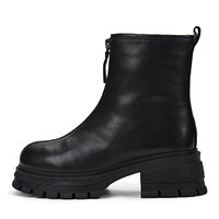 Повседневные черные ботинки с декоративной молнией на передней части модели. Материал верха - бархатистый спилок. Подкладка и стелька утеплены натуральным мехом. Утолщенная резиновая подошва отличается прочностью и устойчивостью на любых покрытиях.