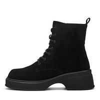 Лаконичные ботинки с высокой шнуровкой в светло-сером оттенке. Верх выполнен из бархатистого спилка. Подкладка и стелька утеплены натуральной шерстью. Утолщенная подошва из материала ТЭП обеспечивает устойчивость на любых поверхностях.
