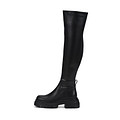 Эффектные черные ботфорты на массивной платформе. Пара утеплена мягким ворсином. Рифленая подошва из материала ТЭП поддерживает стопы в оптимальном положении и обеспечивает устойчивость на любых покрытиях.
