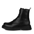 Минималистичные черные женские ботинки с верхом из матовой натуральной кожи. Густой натуральный мех на подкладке заботится о комфорте ваших стоп в холодную погоду. Графичная подошва из ТЭП обеспечивает оптимальную поддержку и хорошее сцепление с поверхностью. Модель со шнуровкой дополнена удобной застежкой на молнию.