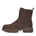 Базовые коричневые женские ботинки из мягкого ворсистого спилка. Густой натуральный мех на подкладке заботится о комфорте ваших стоп в холодную погоду. Высокая резиновая подошва обеспечивает оптимальную поддержку и хорошее сцепление с поверхностью, а также не боится влаги. Модель со шнуровкой дополнена застежкой на молнию. Крупная петля на голенище для удобства надевания обуви.