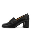 Лоферы в универсальном черном цвете. Модель с верхом из мягкой кожи шевро. Комфорт стоп гарантирует подкладка и стелька из шевро. Лоферы на широком устойчивом каблуке 65 мм гармонично дополнят образы с брюками, костюмами, джинсами и платьями. Перемычка украшена золотистой пряжкой-тензелем.