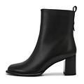 Чёрные ботильоны с короткой боковой молнией и петлёй на заднике выполнили из нежной кожи шевро. Пару поставили на широкий устойчивый каблук высотой 76 мм. Подкладка из ворсина надёжная, долговечная и отличается прекрасными теплоизоляционными свойствами. Подошва из резины устойчива к скольжению и обладает достаточной упругостью, чтобы сделать каждый шаг комфортным даже при длительной ходьбе.
