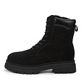 Актуальные черные ботинки на шнуровке. Комбинация бархатистого спилка и глянцевой искусственной кожи создает стильную разницу текстур. Модель утеплена натуральной шерстью. Высокая рифленая подошва из материала ТЭП обеспечивает устойчивость на любой поверхности. Для облегчения процесса надевания обуви предусмотрена молния.