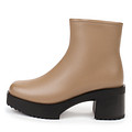 Акцентные бежевые ботинки на платформе. Верх выполнен из гладкой кожи из спилка. Пара утеплена мягкой натуральной шерстью. Высокая подошва из материала ТЭП с выраженными протекторами отличается легкостью и надежным сцеплением с любой поверхностью. Широкий каблук высотой 6,5 см грамотно распределяет нагрузку на стопы.