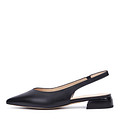 Женские туфли из натуральной кожи с острым носом и открытой пяткой выполнены в стиле слингбэков. Эти туфли на низком устойчивом каблуке подходят для повседневной носки, работы и праздников. Идеальны для демисезонного периода, могут быть использованы как свадебные или вечерние туфли. Черные туфли с качественной фурнитурой и гибкой подошвой из резины обеспечивают комфорт и стиль.