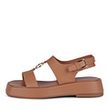 Бежевые кожаные сандалии с широкими ремешками и металлическим декором. Натуральная кожаная подкладка обеспечивает комфорт даже при длительном использовании пары. Высокая подошва летних сандалий изготовлена из резины, она обеспечивает надежное сцепление с любой поверхностью. Модель дополнена классическим замком с пряжкой.