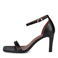 Эффектные кожаные босоножки черного цвета. Тонкие ремешки с подкладкой из мягкой натуральной кожи надежно фиксируют обувь на ноге. Стелька из нежной кожи шевро обеспечивает комфорт даже при длительном контакте обуви с обнаженной ступней. Летние босоножки на устойчивом каблуке высотой 90 мм сделают силуэт более изящным.
