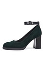 Базовые зеленые велюровые туфли на устойчивом каблуке. Подкладка и стелька из мягкой натуральной кожи формируют комфортную посадку. Изящный ремешок на щиколотке надежно фиксирует пару на ноге. Каблук высотой 85 мм гарантирует оптимальное распределение нагрузки по стопе. Туфли идеально дополнят образы с джинсами, юбками, платьями.