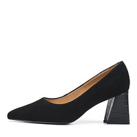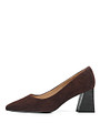 Базовые черные велюровые туфли на устойчивом каблуке. Подкладка и стелька из мягкой натуральной кожи формируют комфортную посадку. Каблук высотой 70 мм гарантирует оптимальное распределение нагрузки по стопе. Туфли идеально дополнят образы с джинсами, юбками, платьями.