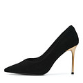 Стильные черные лодочки, идеально вписывающиеся в коктейльный дресс-код. Верх туфель выполнен из бархатистого велюра, подошва - из прочного тунита. Тонкий золотой каблук высотой 9,3 см и острый нос делают модель невероятно элегантной.