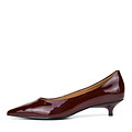 Женские лаковые туфли из натуральной кожи бордового цвета с острым носком и устойчивым широким каблуком. Модель в стиле лодочки с закрытой пяткой, без застежек. Мягкая кожаная подкладка и стелька с эффектом памяти Munz Memory обеспечивают комфорт. Гибкая износостойкая подошва с противоскользящим покрытием. Идеальны для демисезонной и летней носки.