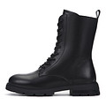 Лаконичные черные ботинки с высокой шнуровкой. Верх выполнен из практичной кожи из спилка со специальным водонепроницаемым покрытием. Стелька утеплена мягким ворсином. Высокая резиновая подошва с выраженными протекторами отличается прочностью и хорошим сцеплением с поверхностью. Модель с удобной застежкой на молнию.