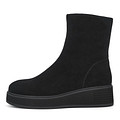 Минималистичные черные ботинки с бархатистой фактурой. Материал верха - прочный спилок. Пара утеплена мягкой натуральной шерстью для оптимальной терморегуляции на улице и в помещении. Высокая платформа из ТЭП отличается легкостью, морозоустойчивостью и хорошим сцеплением с любой поверхностью.