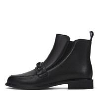 Изящные черные ботинки с декоративной цепью в тон на подъеме. Верх выполнен из бархатистого спилка. Пара утеплена мягким ворсином. Утолщенная подошва из материала ТЭП обеспечивает надежное сцепление с поверхностью.