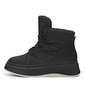 Стеганые черные дутики для долгих прогулок. Верх выполнен из плотного текстиля, обсоюзка дополнительно укреплена современной искусственной кожей. Пара утеплена натуральной шерстью для оптимальной терморегуляции на улице и в помещении. Объемная подошва из материала ТЭП отличается легкостью, морозоустойчивостью и хорошим сцеплением с поверхностью.