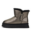 Акцентные угги в ультрамодном оттенке темного серебра. Материал верха - текстурированная кожа из спилка. Подкладка и стелька утеплены натуральной шерстью. Молния на боковой части модели украшает модель и облегчает процесс надевания. Высокая подошва из ТЭП отличается прочностью и хорошим сцеплением с поверхностью.