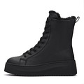 Модные высокие ботинки со шнуровкой в классическом черном исполнении. Верх выполнен из мягкой кожи из спилка. Подкладка и стелька утеплены натуральной шерстью. Высокая подошва из материала ТЭП хорошо амортизирует нагрузку на стопы и обеспечивает устойчивость на любых поверхностях.