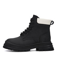 Актуальные молочные ботинки выполнены в стиле рабочей обуви. Материал верха - матовая кожа из спилка. Утолщенный ворот бережно поддерживает зону щиколоток. Подкладка и стелька утеплены натуральной шерсти, обеспечивающей комфортную терморегуляцию на улице и в помещении. Утолщенная резиновая подошва с выраженными протекторами отличается прочностью и хорошим сцеплением с поверхностью.