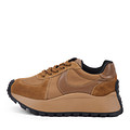 Базовые рыжие кроссовки на платформе. Модель с комбинированным верхом из бархатистого спилка и текстиля. За комфорт стоп отвечают мягкая текстильная подкладка и стелька из натуральной кожи. Высокая подошва из резины поддерживает стопы в оптимальном положении. Утолщенный ворот поддерживает зону щиколоток.