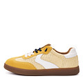 Женские летние и демисезонные кеды из дышащего текстиля и натуральной кожи на шнурках. Модель на толстой резиновой подошве с амортизацией и противоскользящими свойствами. Легкие и комфортные для спорта, прогулок и повседневной носки. Съемная кожаная стелька и отсутствие подкладки обеспечивают удобство на весь день. Стиль casual с желтыми и коричневыми вставками.