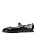 Трендовые черные туфли Мэри Джейн. Верх выполнен из лакированной кожи из спилка. За комфорт стоп отвечают подкладка из натуральной кожа и стелька из нежной кожи шевро. Тунитовая подошва устойчива к истиранию. Модель классически фиксируется с помощью ремешка и пряжки.