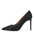 Классические туфли-лодочки в черном цвете. Верх из натуральной кожи надежен и практичен. Подкладка и стелька из нежной кожи шевро обеспечивают комфорт стоп. Гибкая и прочная подошва из тунита гарантирует оптимальную поддержку стоп. Острый нос и тонкий устойчивый каблук высотой 10,1 см придают модели изящества и визуально вытягивают силуэт.