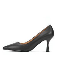 Классические черные лодочки для женственных и лаконичных образов. Материал верха туфель - матовая кожа из спилка. Подошва из тунита отличается износостойкостью. Тонкий устойчивый каблук высотой 80 мм грамотно распределяет нагрузку и визуально вытягивает силуэт.