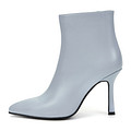 Элегантные голубые ботильоны на шпильке. Острый мыс модели подчеркивает изящество ног. Материал верха - мягкая кожа из спилка. Пара утеплена ворсином. Резиновая подошва отличается прочностью. Тонкий устойчивый каблук высотой 9,5 см грамотно распределяет нагрузку на ноги.