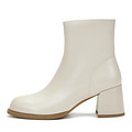 Классические белые ботильоны. Материал верха - нежная кожа из спилка. Пара утеплена мягким ворсином. Резиновая подошва отличается прочностью и хорошим сцеплением с поверхностью. Блочный каблук высотой 6,5 см устойчив и грамотно распределяет нагрузку на ноги. Миндалевидный мыс комфортен для стоп и придает модели изящества.