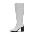 Эффектные белые сапоги. Верх выполнен из гладкой кожи из спилка с влагонепроницаемым покрытием. Пара утеплена мягким ворсином. Утолщенная резиновая подошва отличается прочностью. Устойчивый каблук высотой 8,5 см грамотно распределяет нагрузку на ноги.