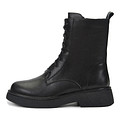 Базовые черные ботинки с высокой шнуровкой. Материал верха - мягкая кожа из спилка. Подкладка и стелька из натуральной шерсти обеспечивают оптимальную терморегуляцию на улице и в помещении. Утолщенная резиновая подошва отличается прочностью и хорошим сцеплением с поверхностью. Модель с удобной застежкой на молнию.