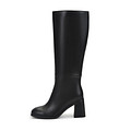 Классические черные сапоги на устойчивом каблуке. Верх выполнен из гладкой кожи из спилка с влагонепроницаемым покрытием. Шерстяные подкладка и стелька обеспечивают комфортную терморегуляцию стоп, а ворсин в районе голенища сохраняет изящество модели. Утолщенная резиновая подошва отличается прочностью.