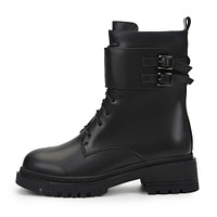 Модные коричневые ботинки в актуальном байкерском стиле. Материал верха - мягкая кожа из спилка. Подкладка и стелька утеплены натуральной шерстью для оптимальной терморегуляции. Утолщенная резиновая подошва с выраженными протекторами отличается прочностью и хорошим сцеплением с любой поверхностью. Модель с высокой шнуровкой и удобной застежкой на молнию.