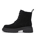 Лаконичные черные ботинки с высокой шнуровкой. Материал верха - бархатистый спилок. Подкладка и стелька утеплены мягким ворсином и натуральной шерстью. Высокая тракторная подошва из материала ТЭП обеспечивает надежное сцепление с любой поверхностью.