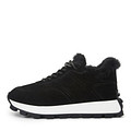 Теплые черные кроссовки для активного отдыха. Материал верха - бархатистый спилок с отделкой под мех. Пара утеплена натуральной шерстью. Объемная контрастная подошва из полиуретана отличается легкостью и прочностью.