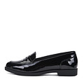 Женские лоферы черного цвета из натуральной лакированной кожи станут прекрасной базовой моделью обуви. Маленький широкий каблук высотой 2,5 см делает их максимально комфортными, а лаконичный дизайн позволит с легкостью сочетать их с различными вариантами гардероба.
