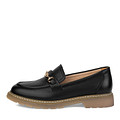 Женские кожаные туфли черного цвета на литой подошве 12 мм из светлого полиуретана, который не стирается, не деформируется, и прослужит вам долгие годы. Верх обуви украшен металлической пряжкой. Невысокий каблук 26 мм придаст походке устойчивость, ваши ноги не устанут даже при ходьбе по неровным дорожкам.
