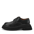 Базовые черные кожаные полуботинки на рифленой подошве. Подкладка и стелька выполнены из мягкой натуральной кожи. Шнуровка отлично фиксирует пару на ноге. Легкая подошва из материала ЭВА формирует оптимальную поддержку и отлично амортизирует нагрузку при каждом шаге.
