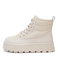 Стильные ботинки сшили из кожи из спилка 60% и текстиля 40%. Зимнюю пару дополнили боковой молнией и петлёй на заднике для комфортного надевания. Модель с внутренней подкладкой из натуральной шерсти. Подошва высотой 48 мм из резины гарантирует долговечность и надежность, повышает устойчивость на скользких поверхностях.