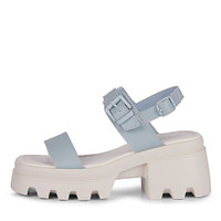 Белые кожаные босоножки с широкими ремешками. Легкая полиуретановая подошва формирует оптимальное распределение нагрузки. Пара с застежкой на классический замок с пряжкой.