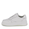 Лаконичные белые кожаные кеды. Легкая текстильная подкладка и мягкая кожаная стелька гарантируют комфорт стоп в течение всего дня. Высокая резиновая подошва поддерживает стопы при ходьбе. Модель со шнуровкой и утолщенным воротом. Пара идеально подойдет для активного отдыха, прогулок и повседневной носки.