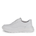 Минималистичные белые кожаные кроссовки с перфорацией. Мягкая кожаная стелька и подкладка гарантируют комфорт стоп в течение всего дня. Изогнутая полиуретановая подошва обеспечивает хорошую поддержку при ходьбе. Модель со шнуровкой и утолщенным воротом. Пара идеально подойдет для активного отдыха, прогулок и повседневной носки.
