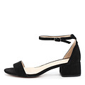 Женские босоножки из натурального велюра с закрытой пяткой и ремешком на пряжке. Стильная летняя обувь на невысоком устойчивом каблуке подойдёт для офиса, отдыха, пляжа и вечеринки. Модель легко сочетается с повседневной и нарядной одеждой. Подкладка и стелька — из натуральной кожи. Удобна на узкую и среднюю ногу.